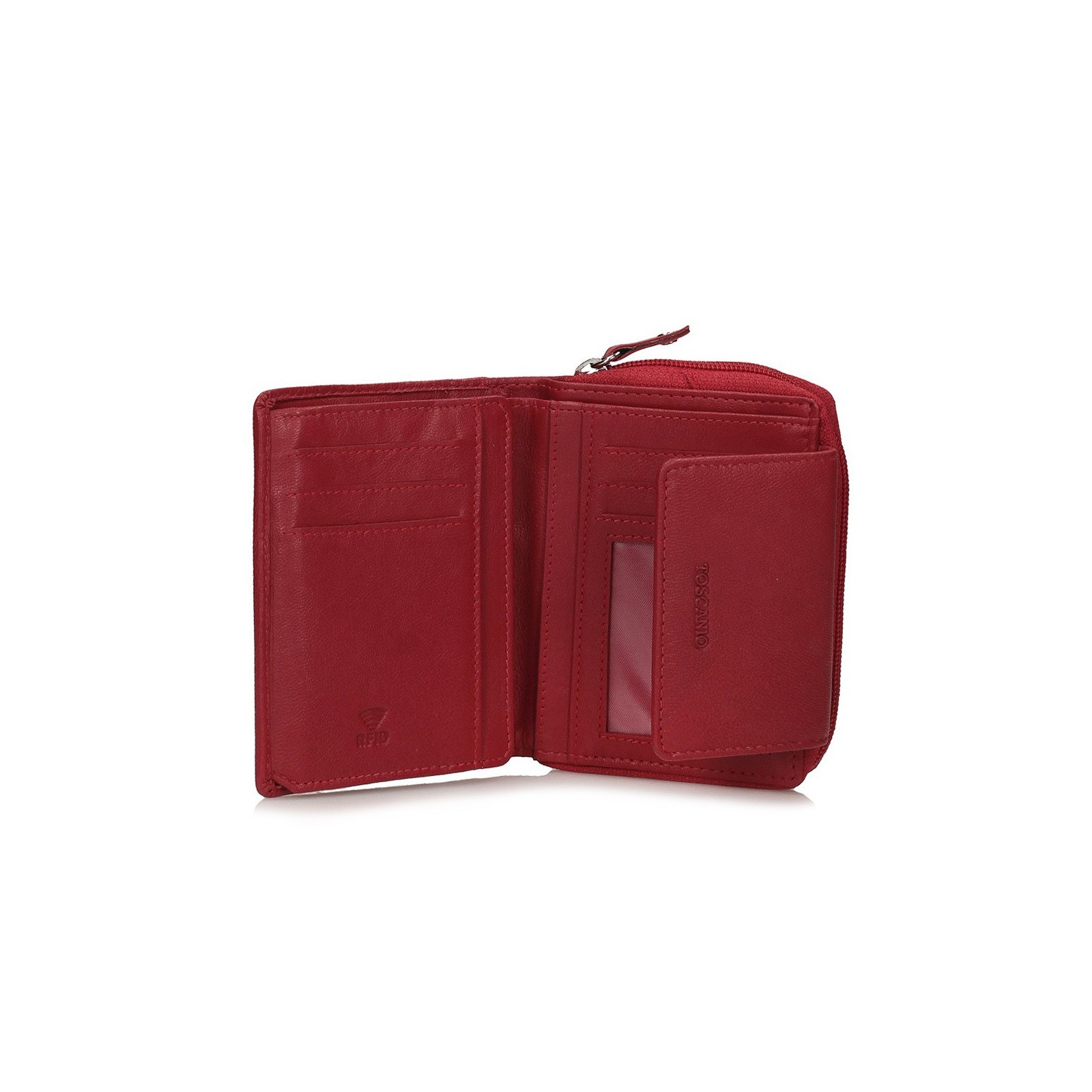 Portfel wykonany z naturalnej, włoskiej skóry, wyposażony w dwie główne komory, jedna z nich