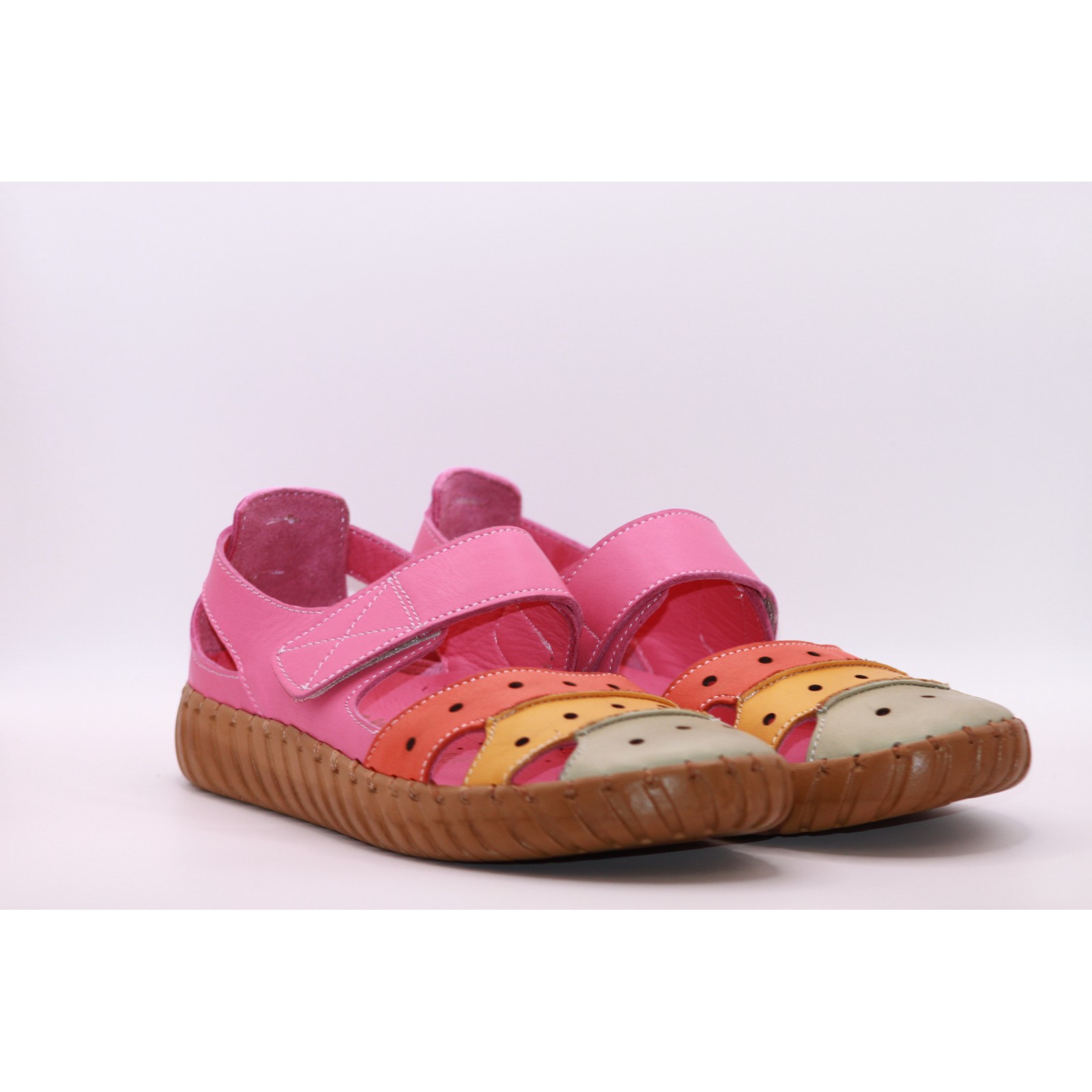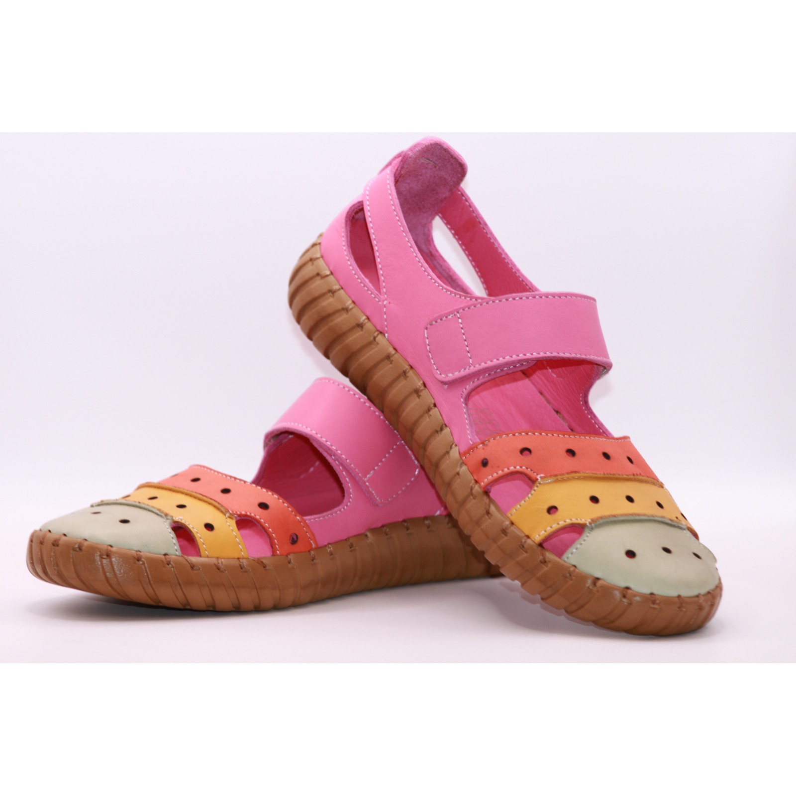 To idealne obuwie na ciepłe dni, łączące wygodę i oryginalny design. Wykonane z naturalnej skóry licowej, zapewniają trwałość i komfort użytkowania. Ich wielokolorowa stylistyka dodaje lekkości i modnego charakteru, doskonale komponując się z letnimi stylizacjami.