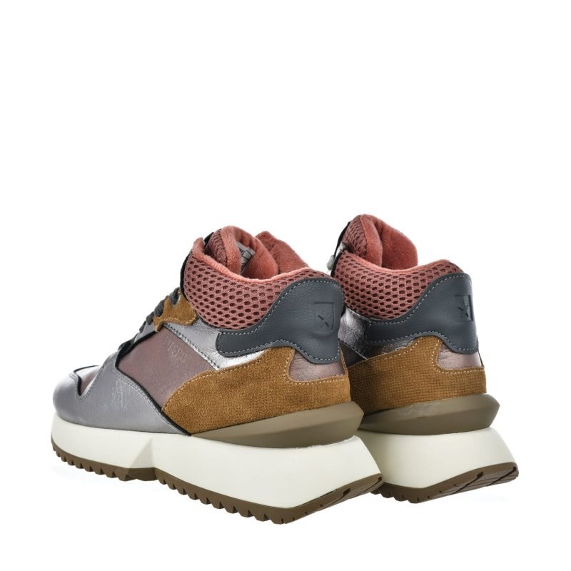 Cholewka sneakersów została wykonana z naturalnej skóry, co zapewnia trwałość i estetykę. Jej minimalistyczny design i subtelne detale podkreślają nowoczesny charakter obuwia, które pasuje do różnorodnych zestawień, od casualowych po bardziej sportowe. Uniwersalny fason sprawia, że sneakersy są idealnym wyborem na każdą okazję.