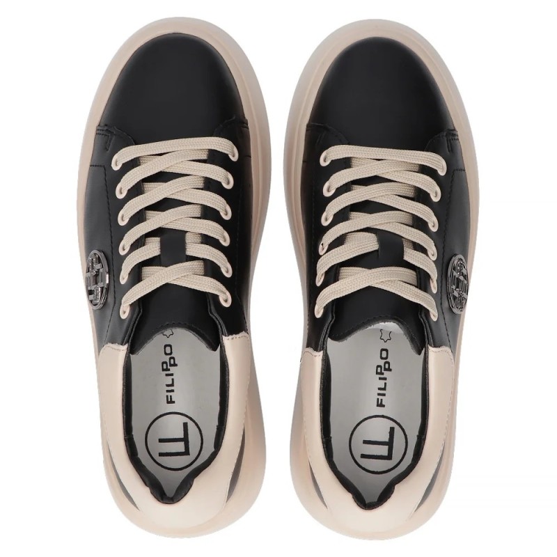 Skórzane sneakersy Filippo DP6058/24 BK/BE czarno-beżowe