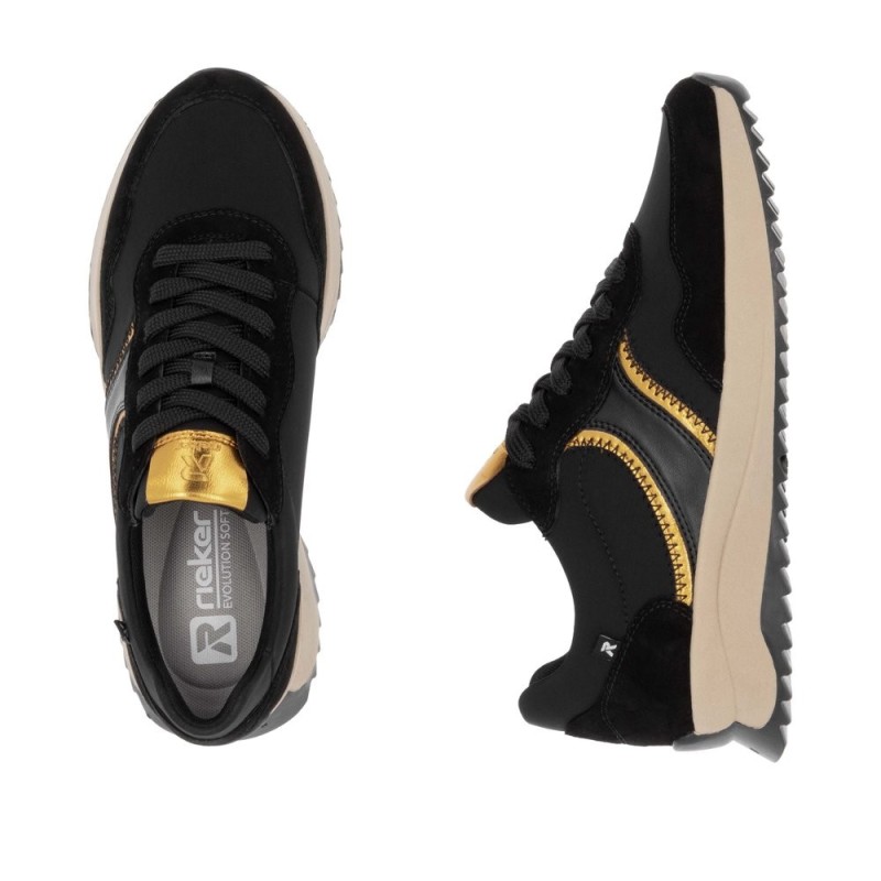 Sneakersy zamszowe damskie czarno-złote Rieker