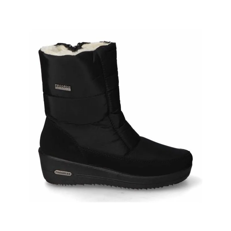 Śniegowce damskie czarne z ozdobnymi paskami Progress