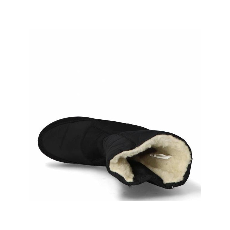 Cholewka wykonana z trwałego materiału tekstylnego charakteryzuje się odpornością na wilgoć i łatwością w pielęgnacji. Klasyczny czarny kolor oraz nowoczesny design sprawiają, że śniegowce są uniwersalnym wyborem, który pasuje do wielu zimowych stylizacji. Ich wysoka konstrukcja chroni nogi przed wiatrem i śniegiem, zapewniając jednocześnie wygodę ruchu.