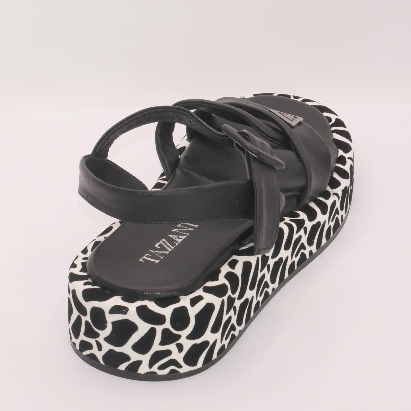 Jeśli szukasz letniego obuwia, które łączy wyrazisty styl z codziennym komfortem, sandały Tazzani na platformie to doskonały wybór. Wykonane z miękkiej, naturalnej skóry, zachwycają nowoczesnym designem, który przyciąga wzrok – zwłaszcza dzięki oryginalnej podeszwie z graficznym wzorem w stylu animal print.