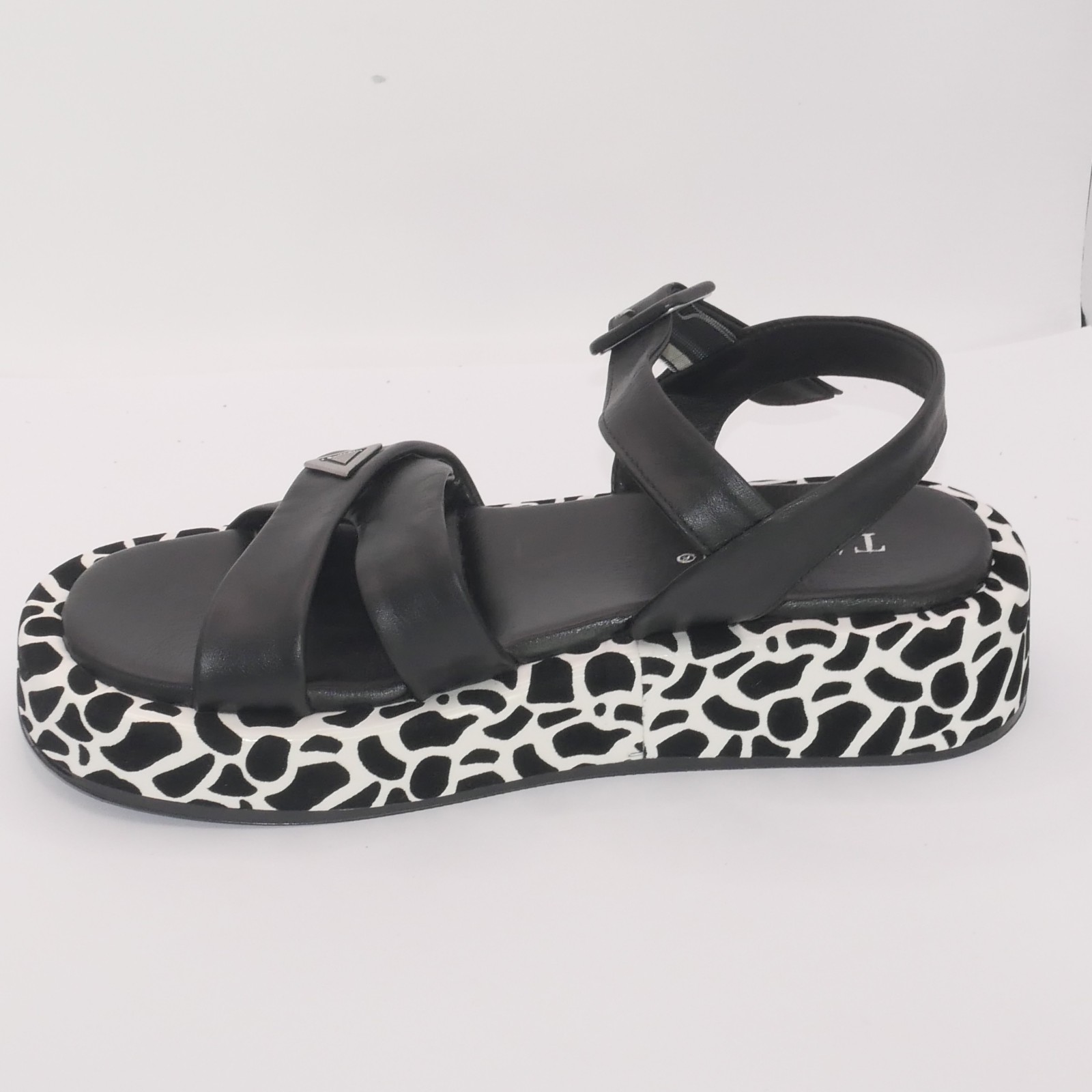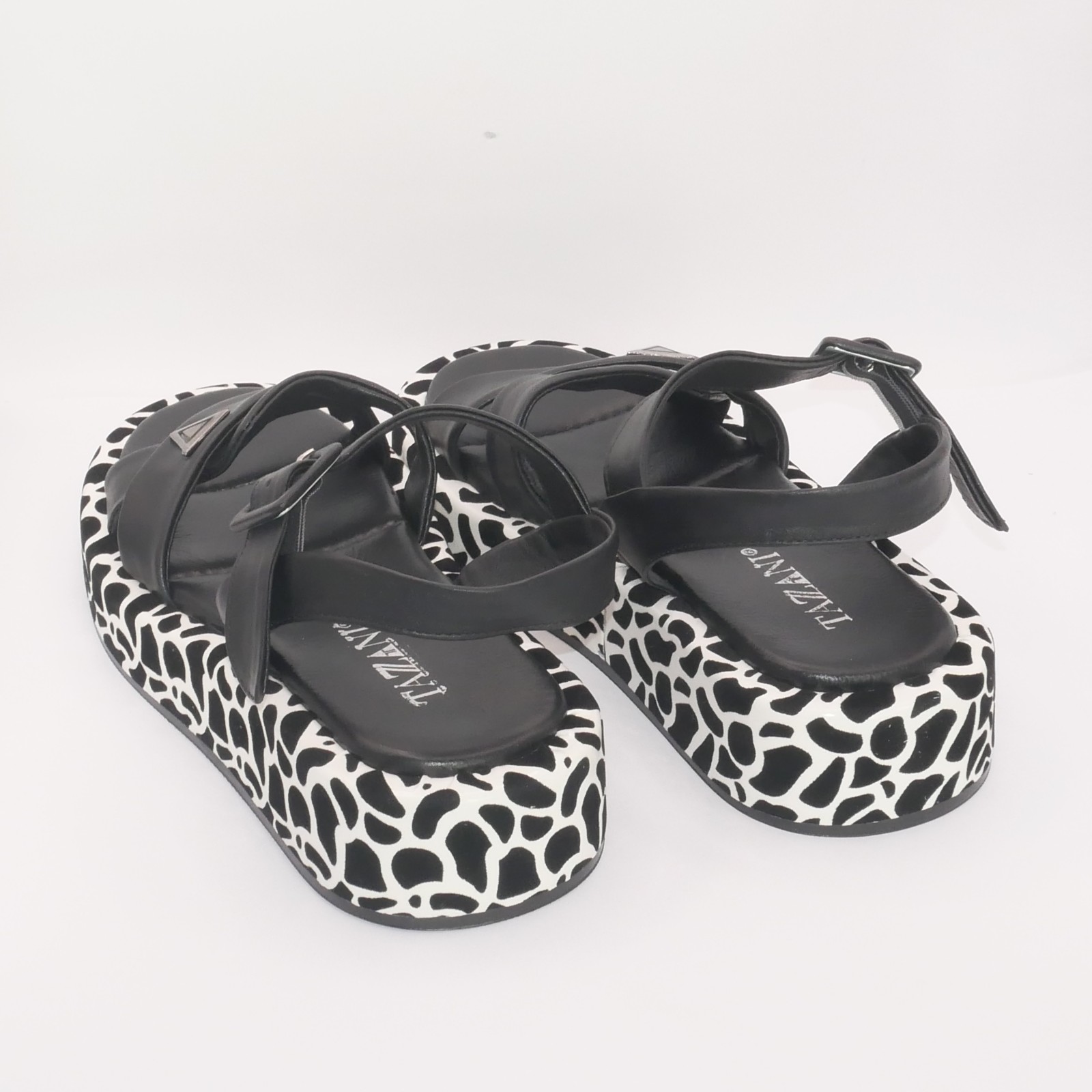 🎨 Kolor: Czarny z białą platformą we wzór zwierzęcy