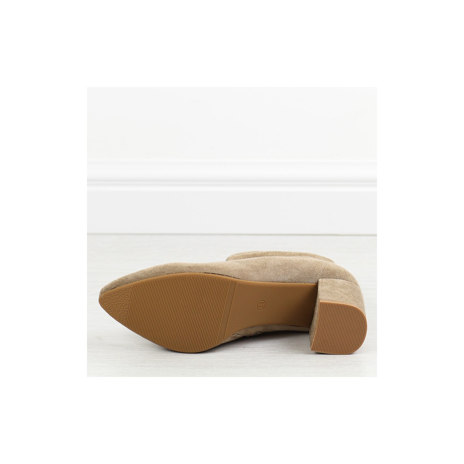 Stylowe botki damskie na obcasie M.Daszyński 2263-13 w kolorze beżowym. Zamszowe wykończenie, wygodny fason i ponadczasowy design.