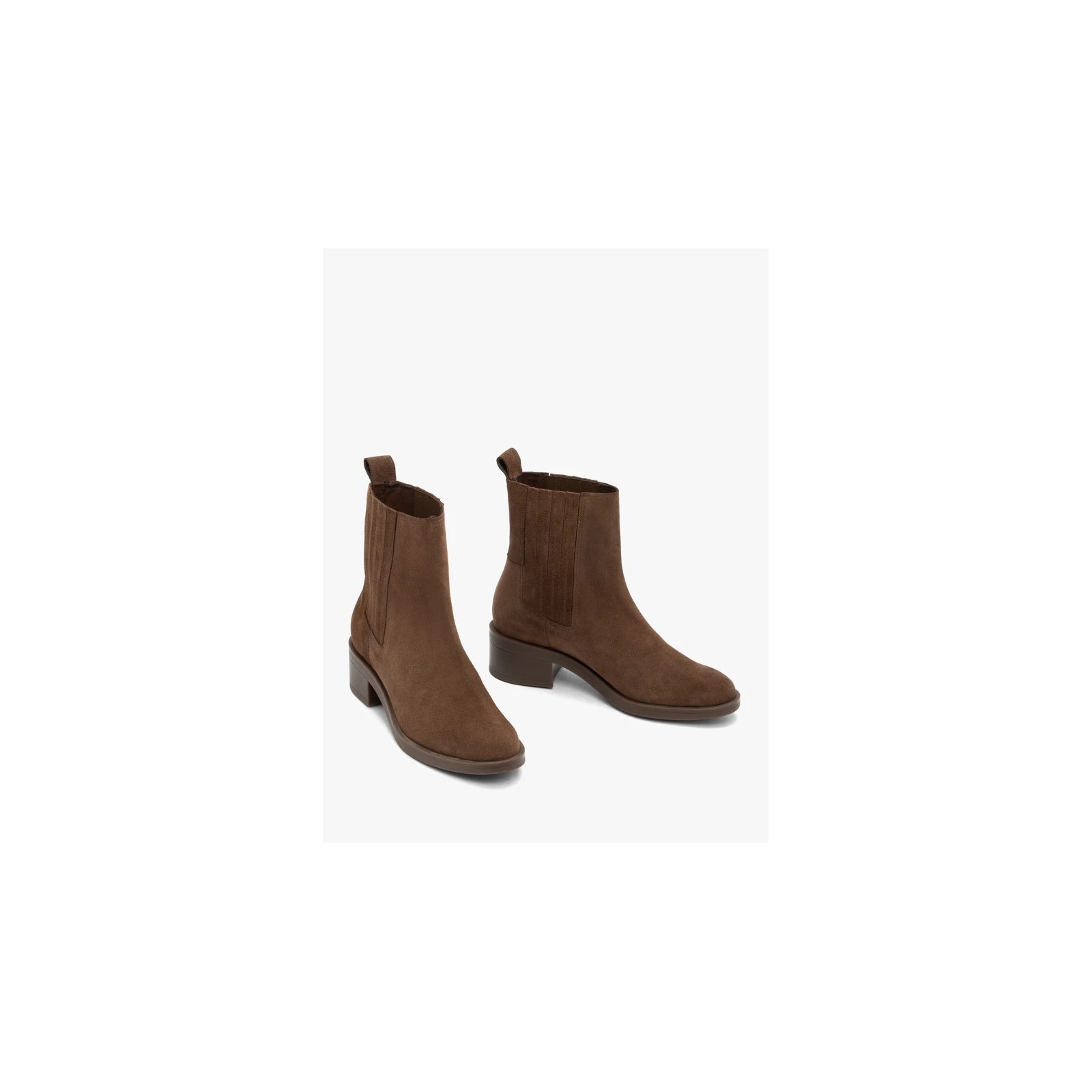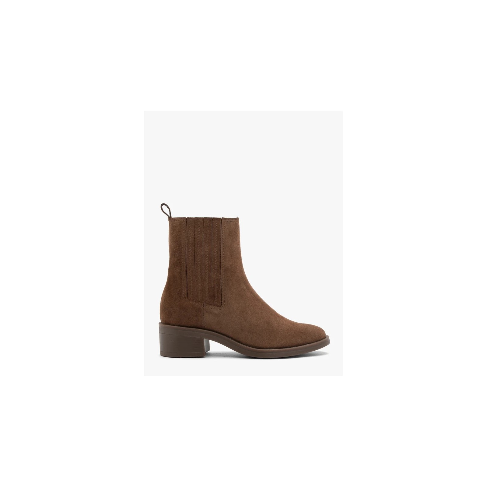 Brązowe sztyblety damskie wykonane ze skóry welurowej, z okrągłym noskiem, cholewką za kostkę i ociepleniem – idealne na chłodniejsze dni. Wsuwane, wygodne, na 4,5 cm obcasie, który zapewnia stabilność i komfort noszenia. Model z linii Relax. Brąz to jedna z topowych barw sezonu – świetna alternatywa dla czerni, doskonale wpisuje się w miejski styl i sprawdzi się na co dzień.