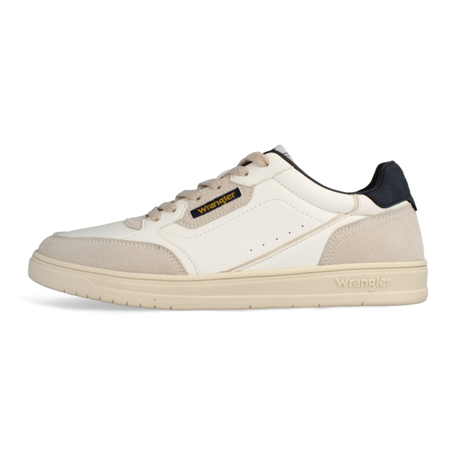 Stylowe sneakersy męskie Wrangler w beżowo-kremowym kolorze. Wykonane z połączenia skóry ekologicznej i zamszu, na wygodnej podeszwie. Idealne na co dzień.