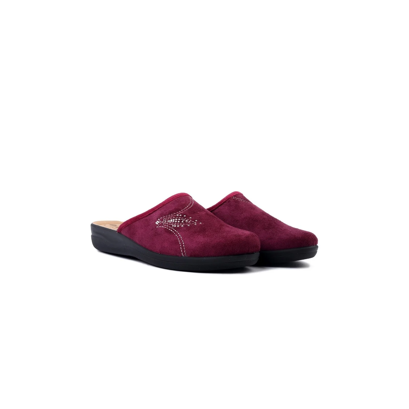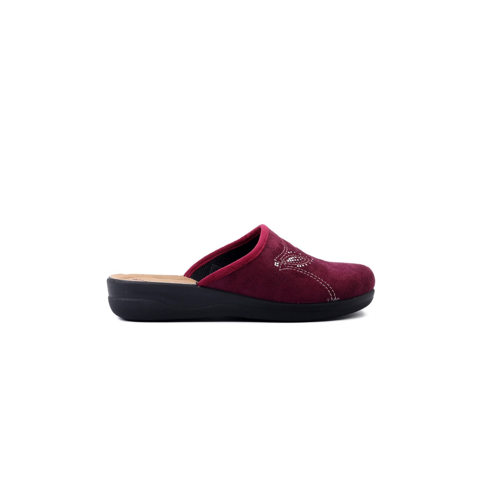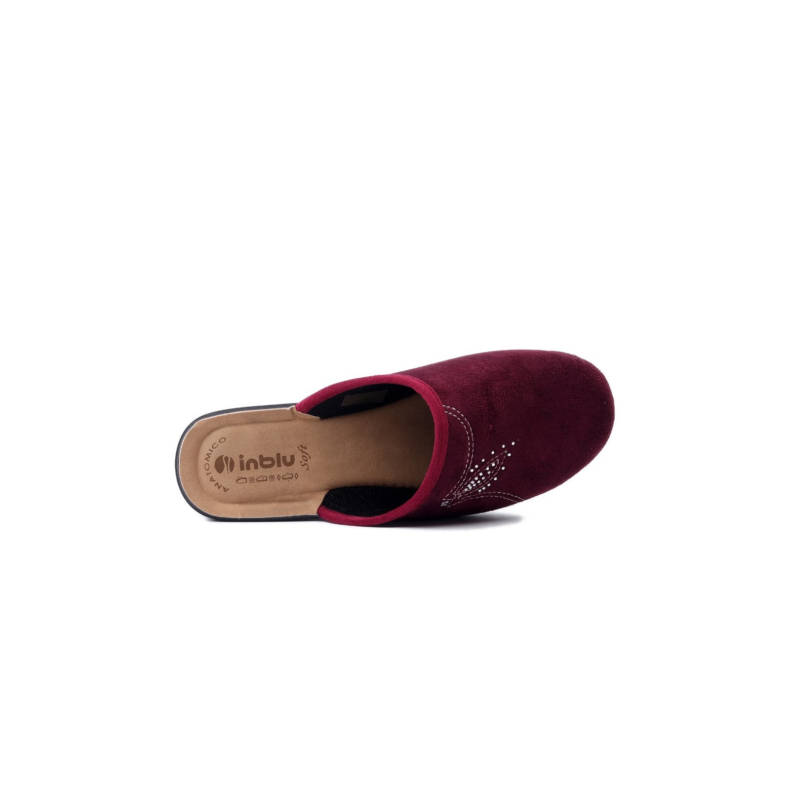 Kapcie damskie Inblu CF-48-066 to połączenie wygody, stylu i solidnego wykonania. Cholewka wykonana została z przyjemnego w dotyku materiału tekstylnego w modnym, śliwkowym odcieniu. Delikatne przeszycia i ozdobny wzór z drobnymi cyrkoniami dodają im kobiecego uroku.