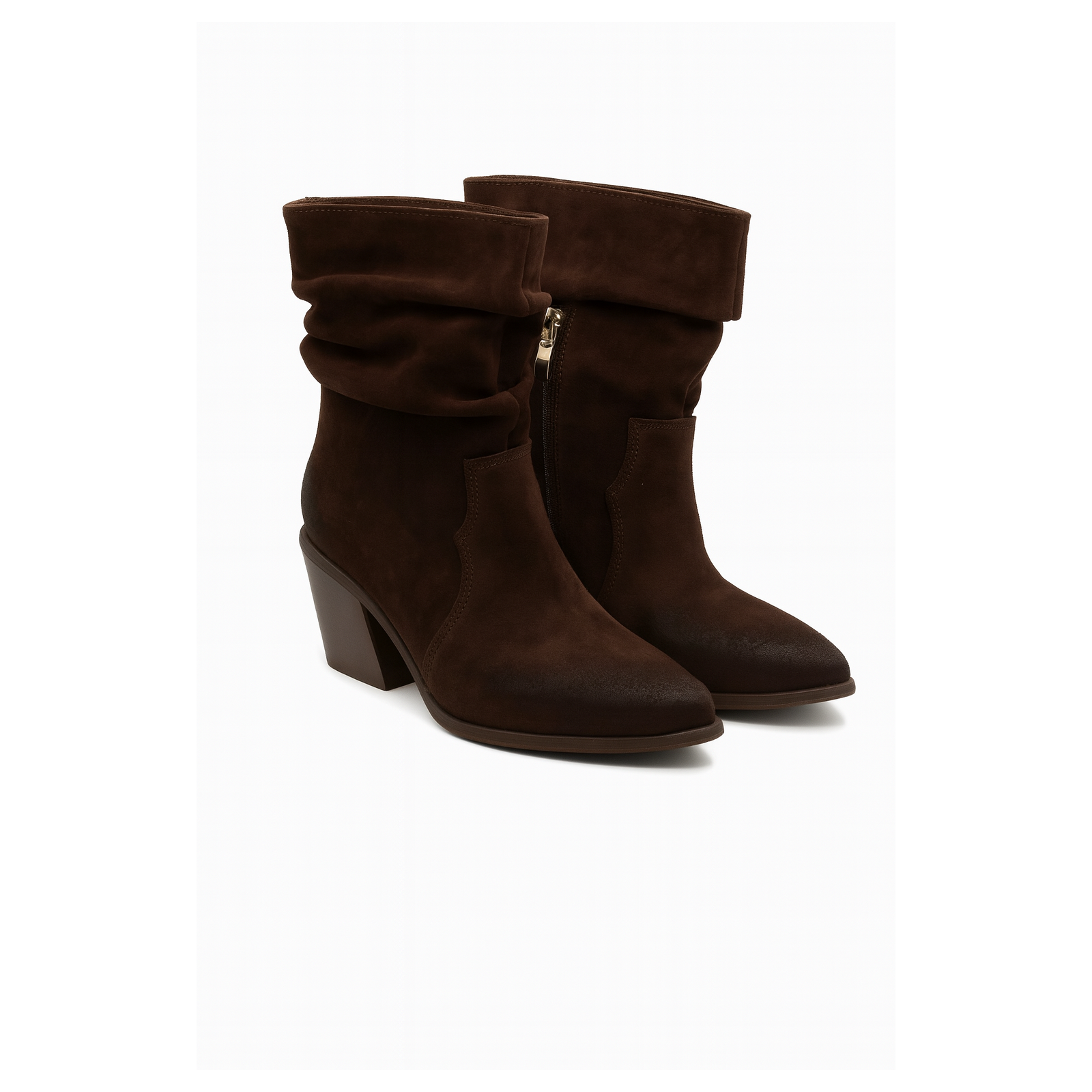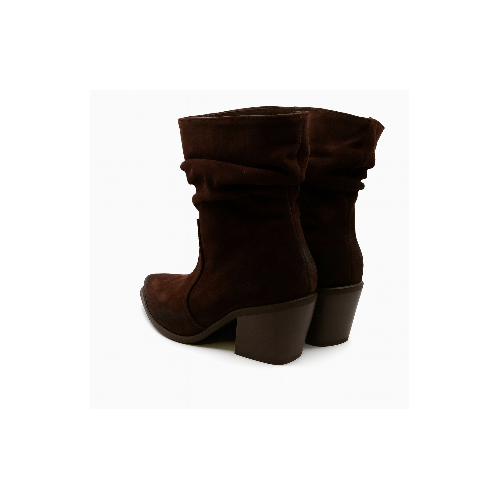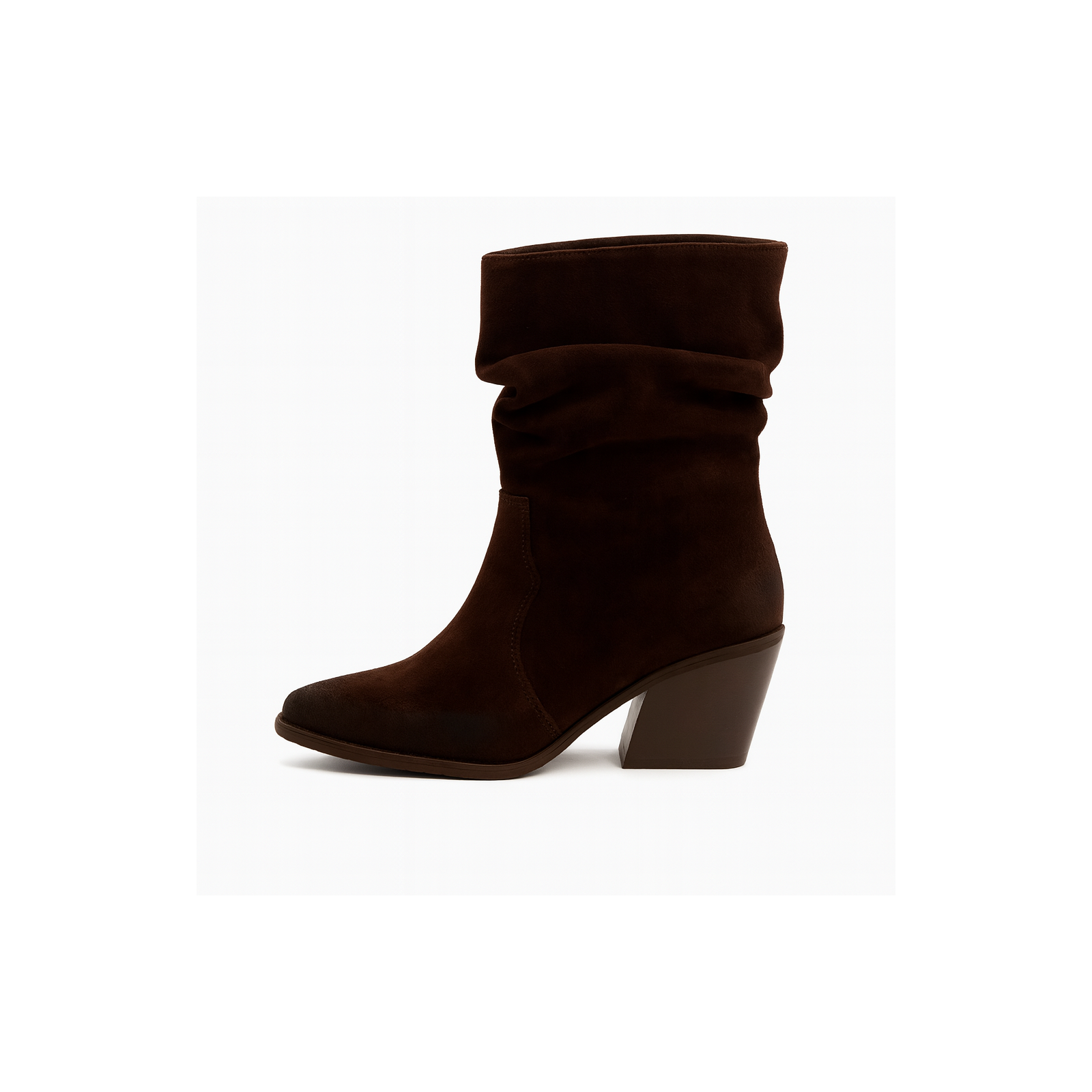 Marszczona cholewka oraz subtelny kowbojski krój nadają butom modnego, kobiecego charakteru. Model wyposażono w praktyczny boczny zamek, który ułatwia zakładanie, oraz antypoślizgową podeszwę gwarantującą pewność kroków. To idealny wybór dla kobiet, które cenią połączenie klasy, nowoczesności i komfortu.