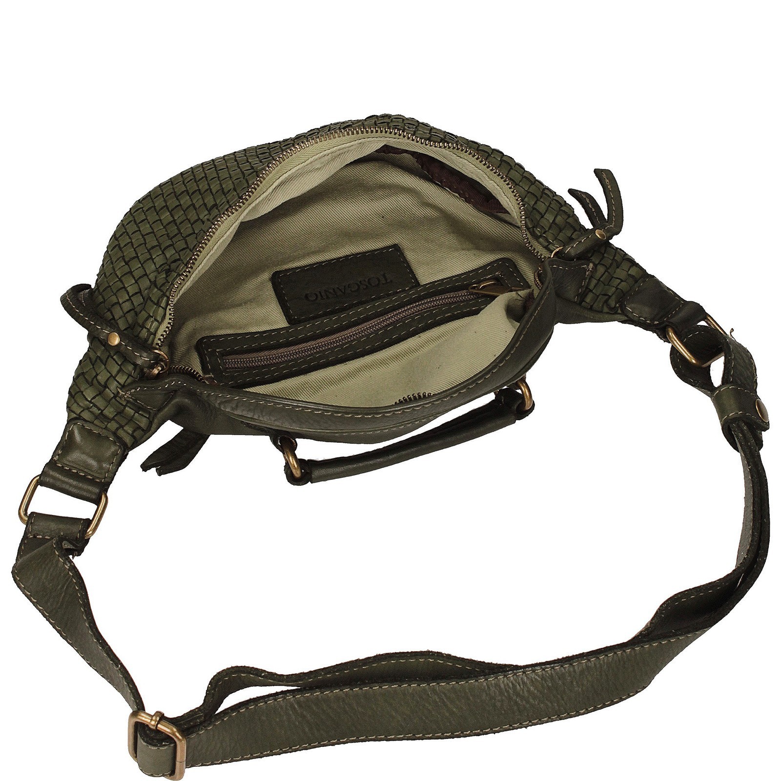 kryj wyjątkową skórzaną nerkę Toscanio, stworzoną z myślą o kobietach ceniących komfort i oryginalny design. Wykonana z wysokiej jakości naturalnej skóry, zachwyca trwałością i precyzyjnym wykończeniem. Jej pleciony przód nadaje całości unikalnego, rękodzielniczego charakteru, a zielony, oliwkowy odcień idealnie wpisuje się w aktualne trendy.