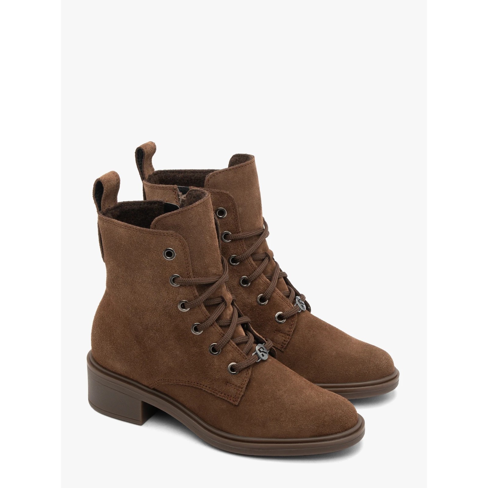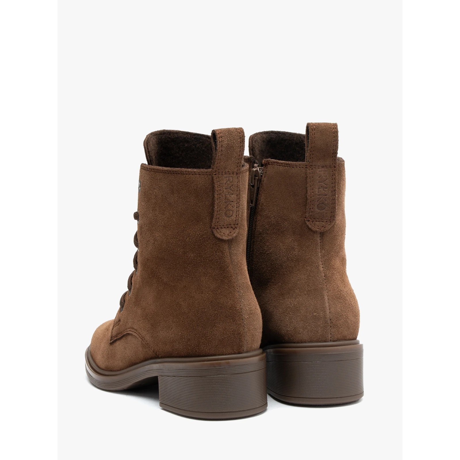 Botki zamszowe Ryłko – brązowe botki damskie sznurowane z naturalnego zamszu