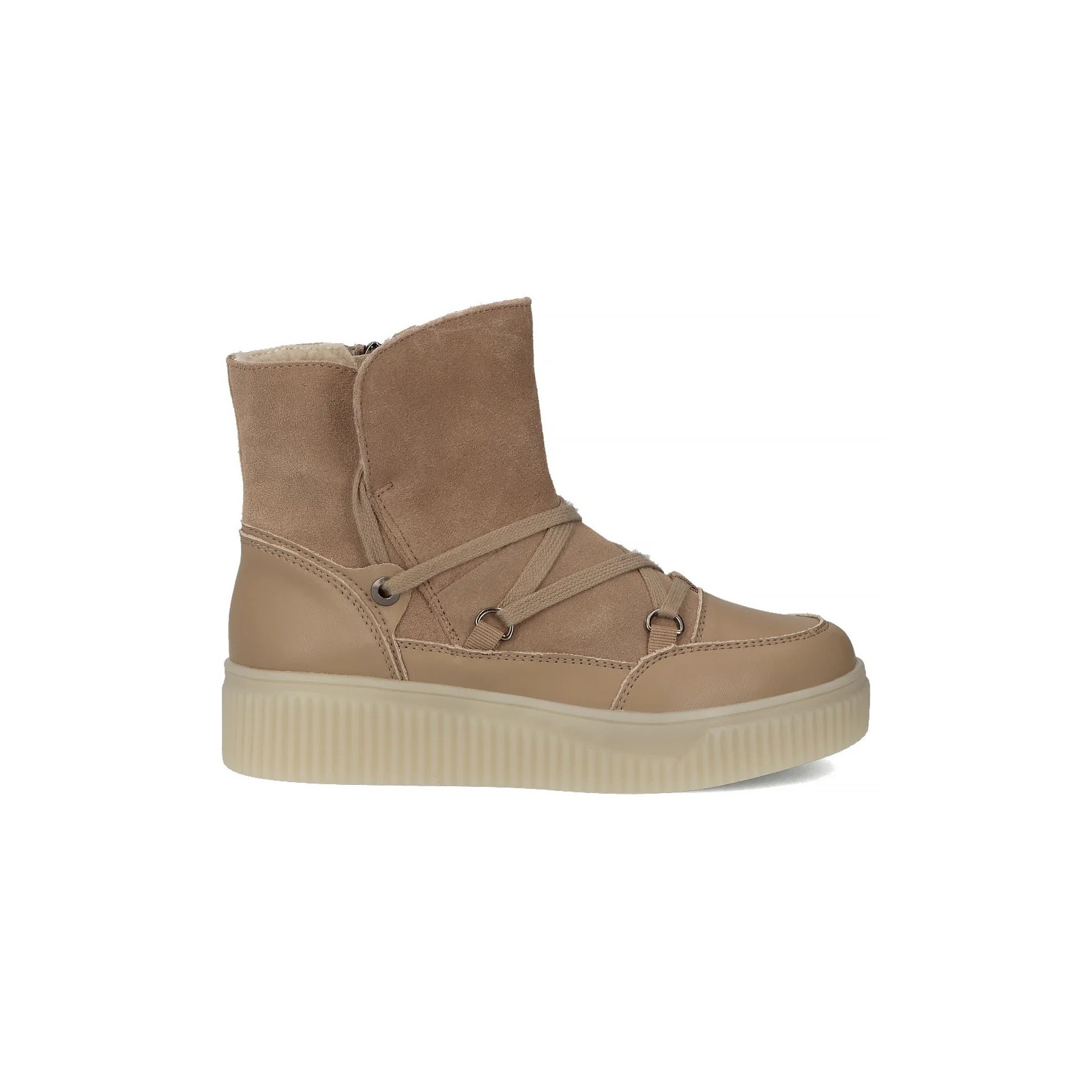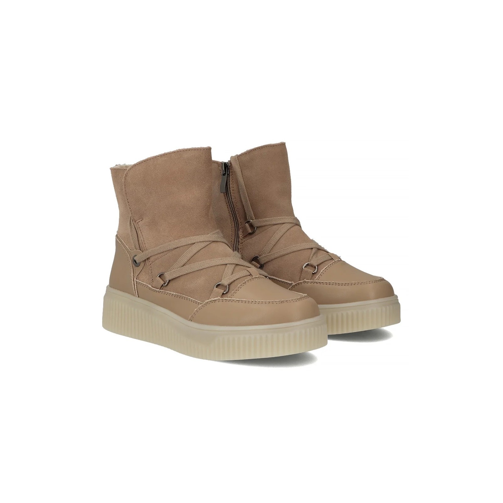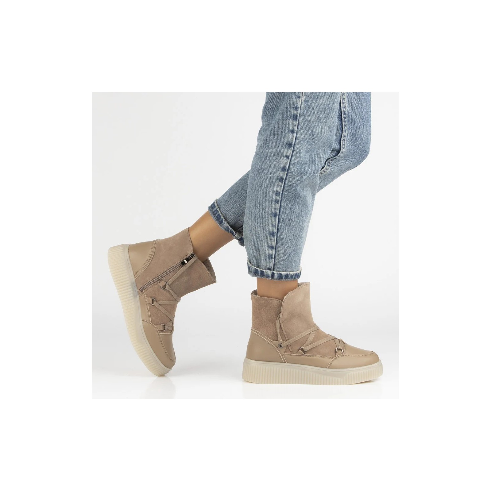 Te beżowe botki damskie skórzane na platformie świetnie sprawdzą się w sezonie jesienno-zimowym – na co dzień, do pracy i na spacery.
