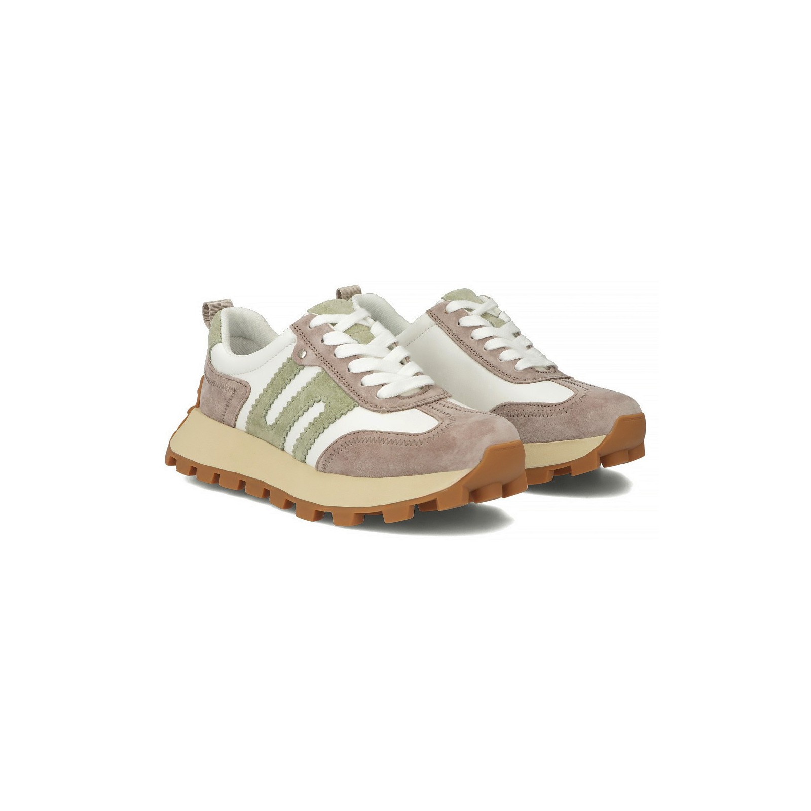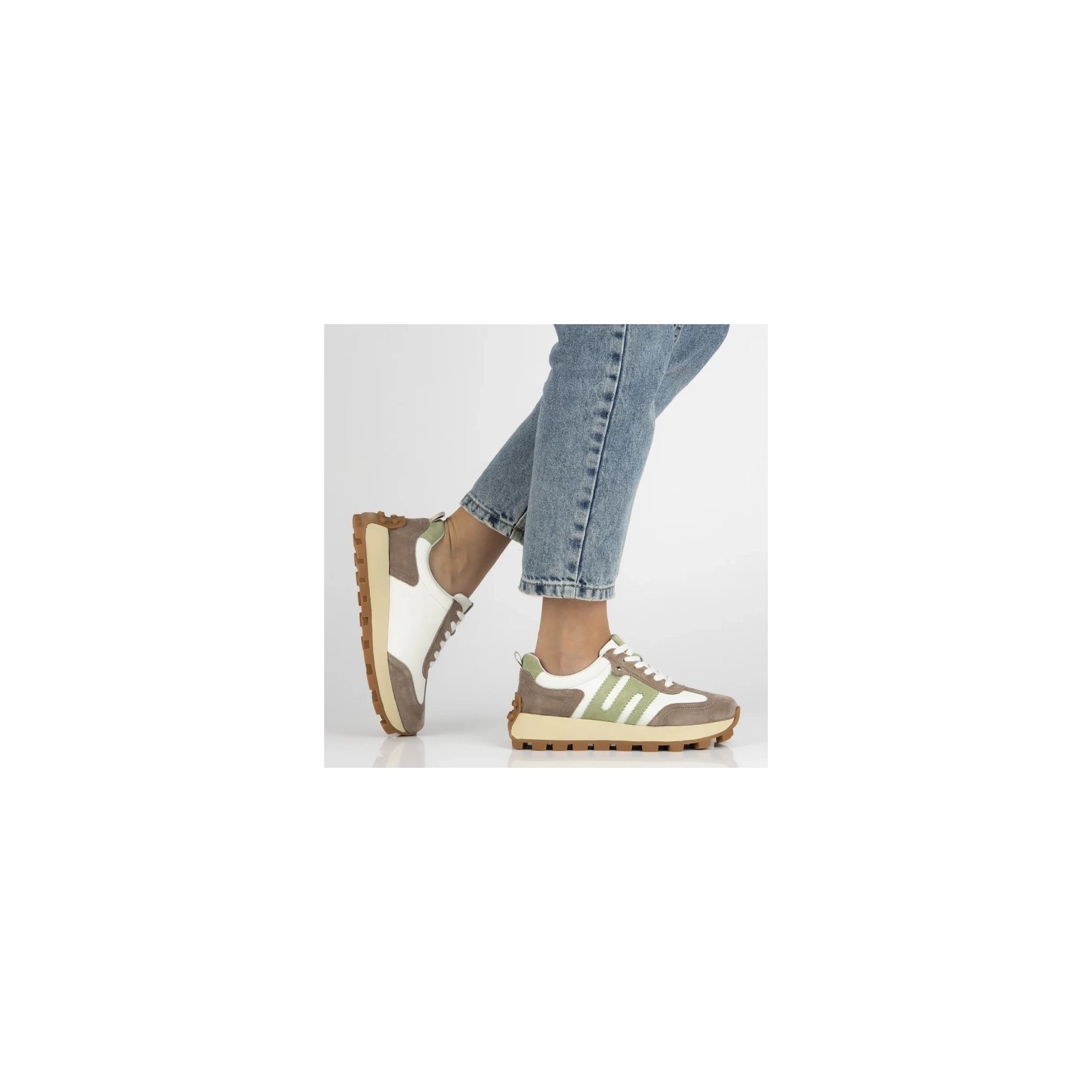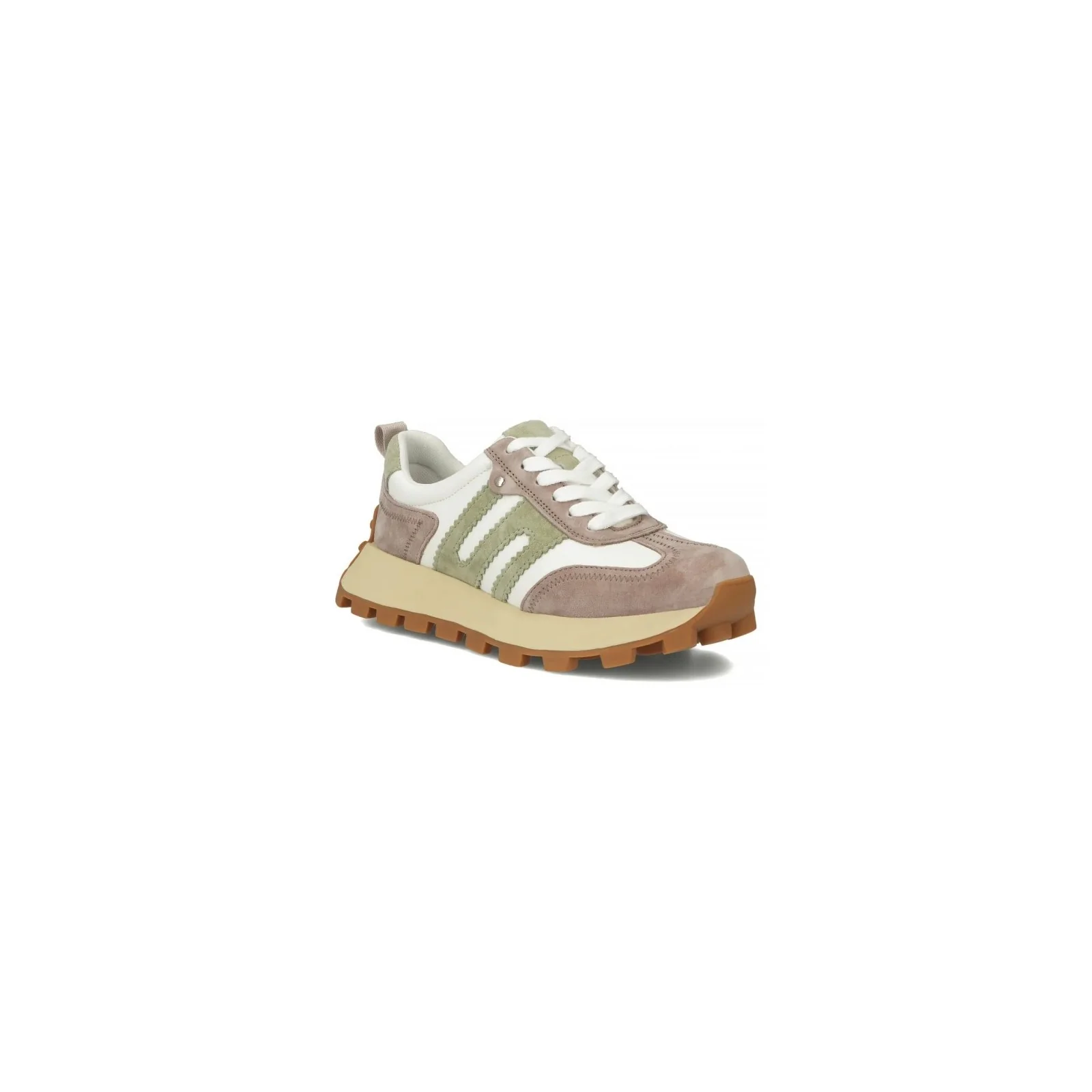 Skórzane sneakersy damskie Filippo to idealna propozycja dla kobiet, które cenią modne wzornictwo, wygodę i wysoką jakość wykonania. Połączenie bieli, beżu i subtelnych zielonych akcentów sprawia, że model świetnie wpisuje się w aktualne trendy i doskonale uzupełnia codzienne stylizacje.