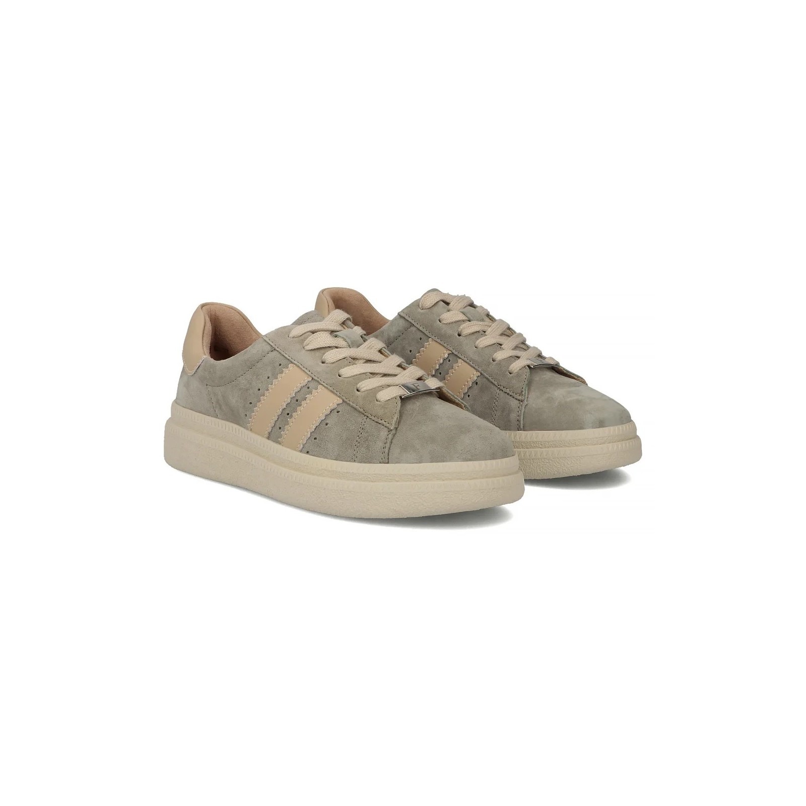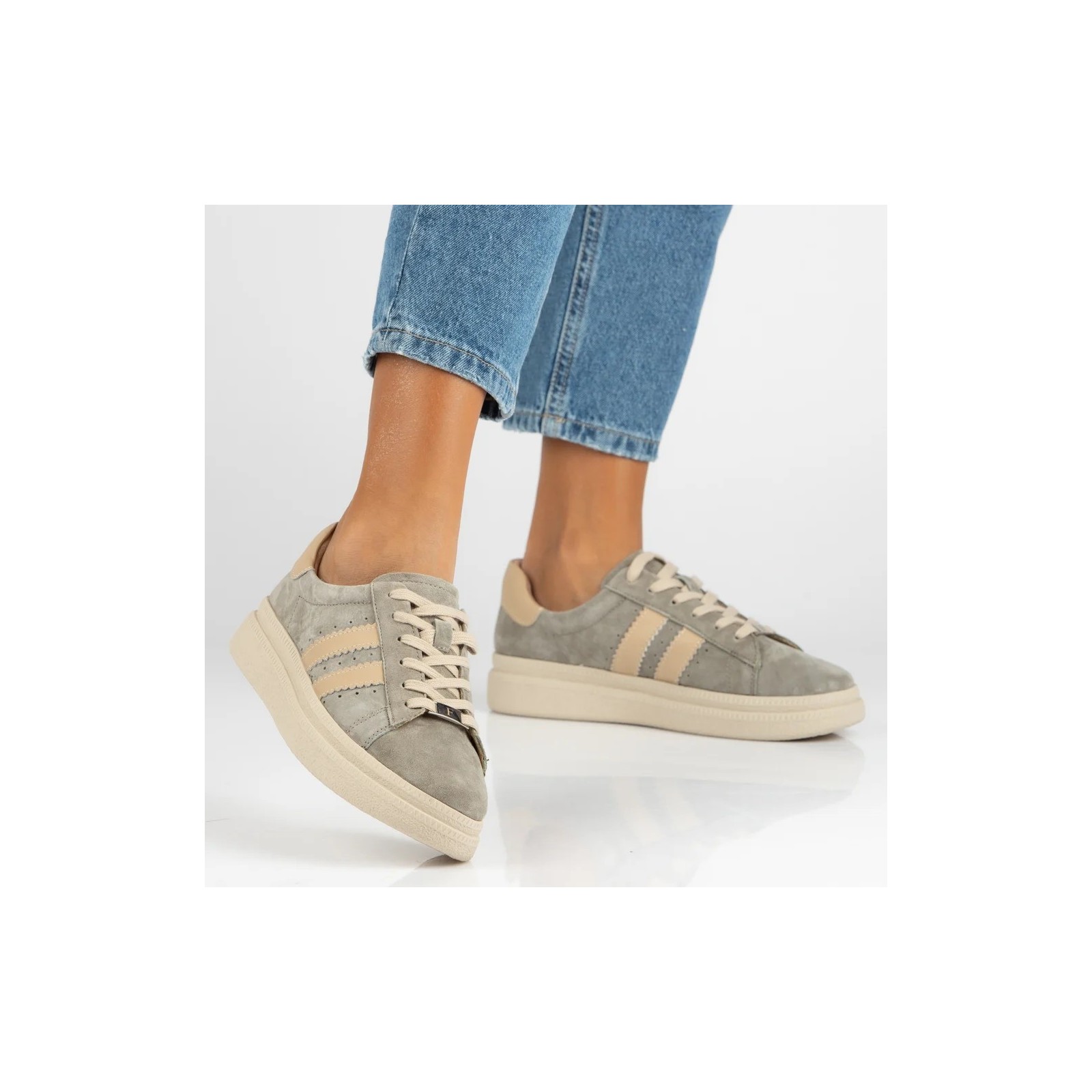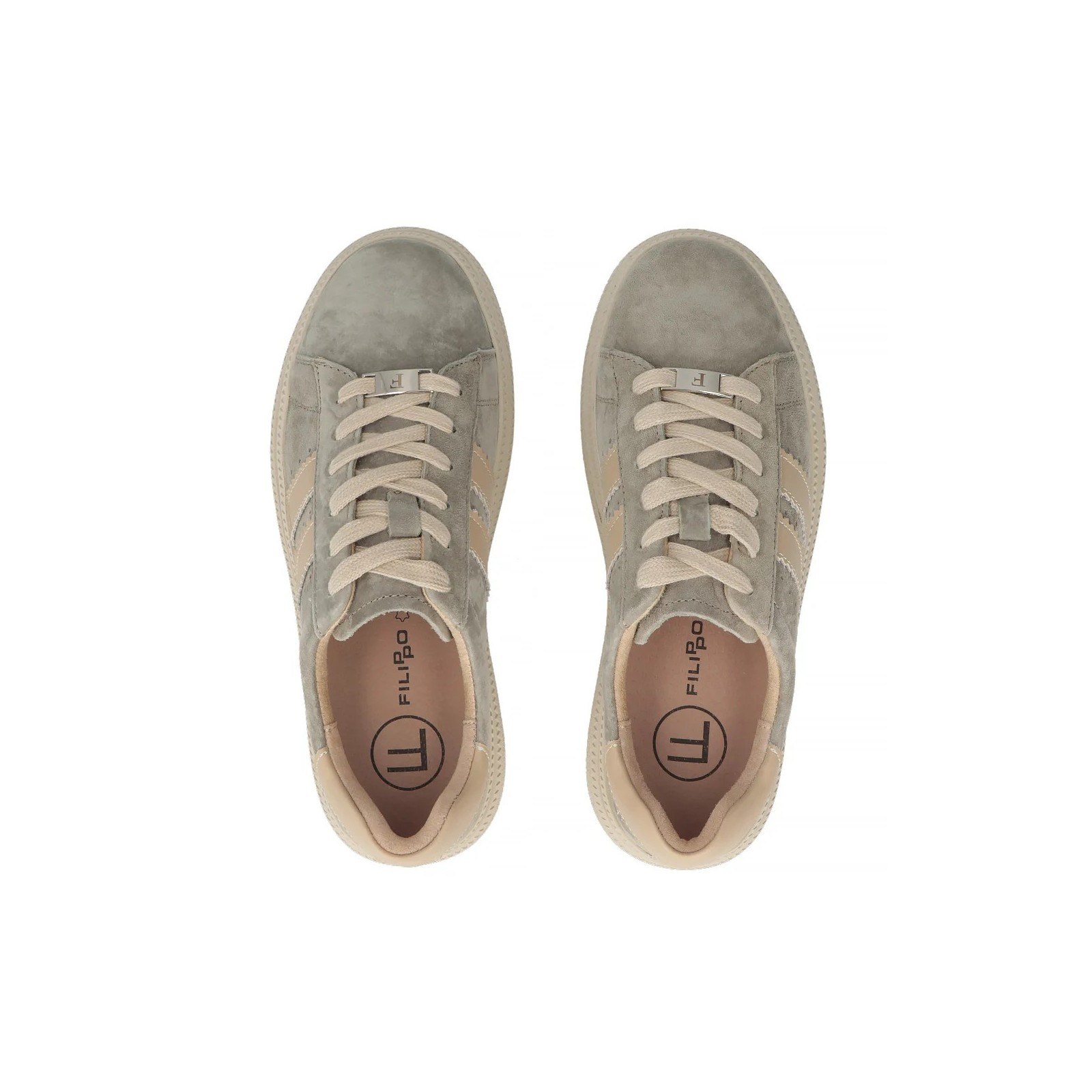 Skórzane sneakersy damskie Filippo to doskonałe połączenie wygody, jakości i modnego designu. Subtelny szary kolor z beżowymi detalami sprawia, że model jest uniwersalny i łatwy do dopasowania do wielu codziennych stylizacji – od casualowych po miejskie.