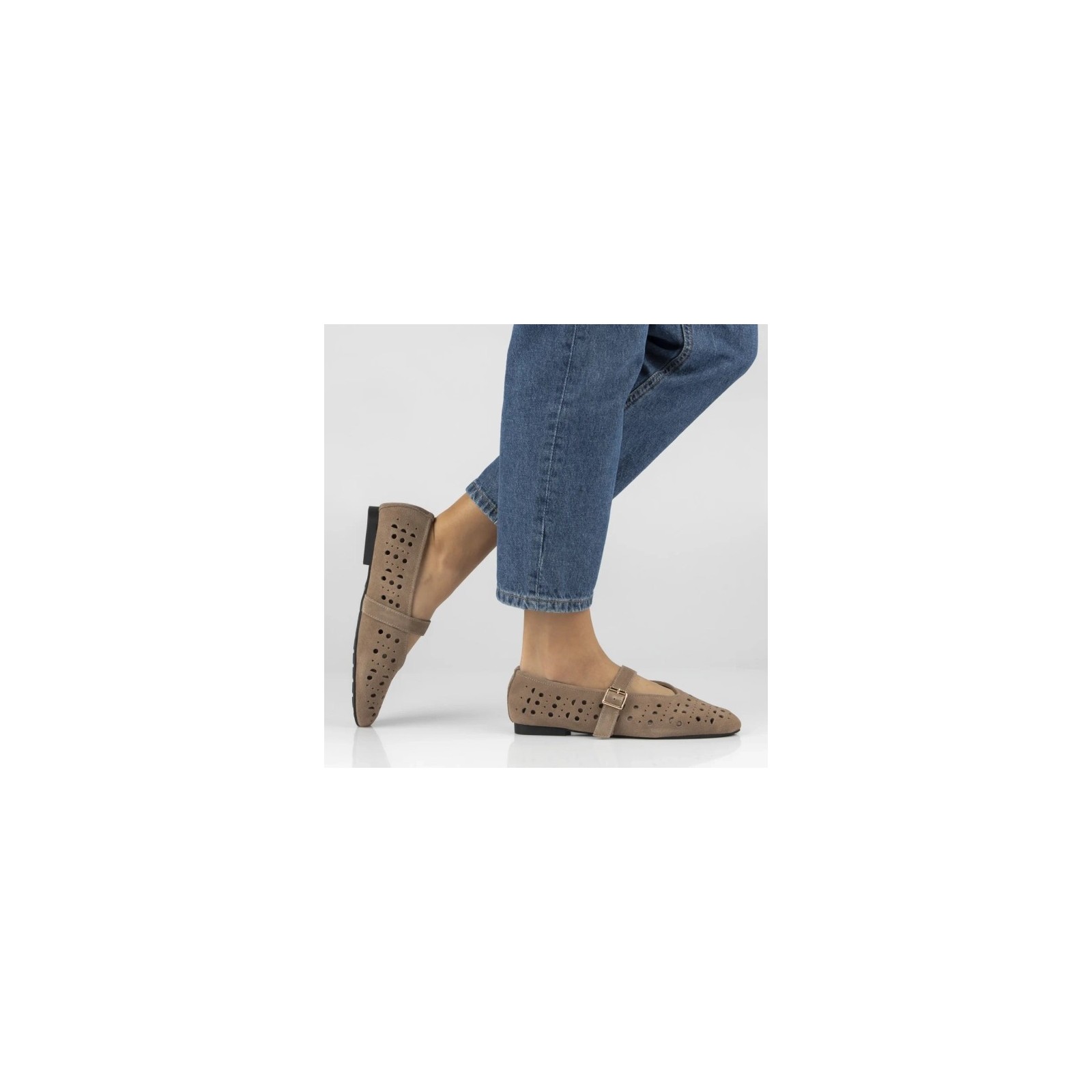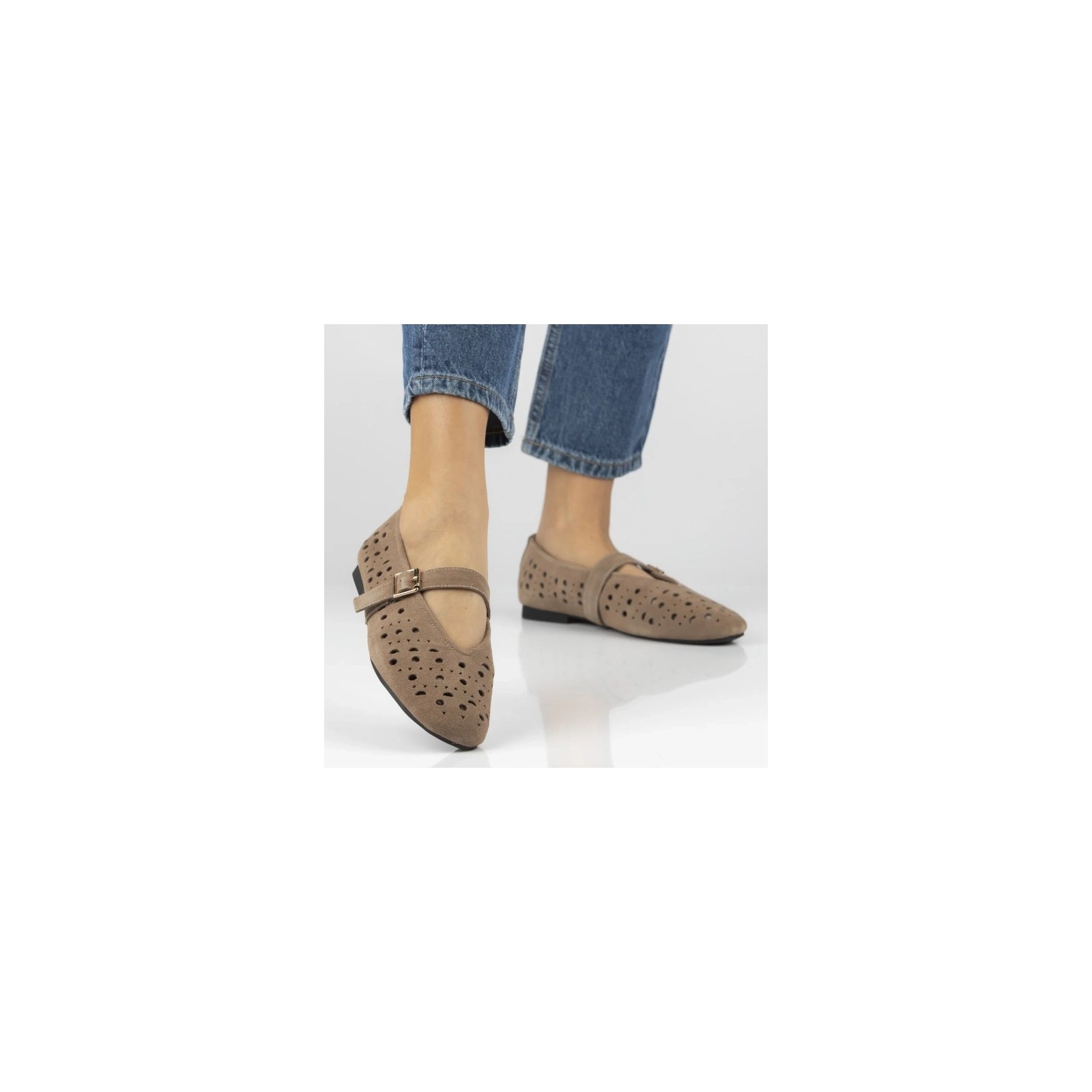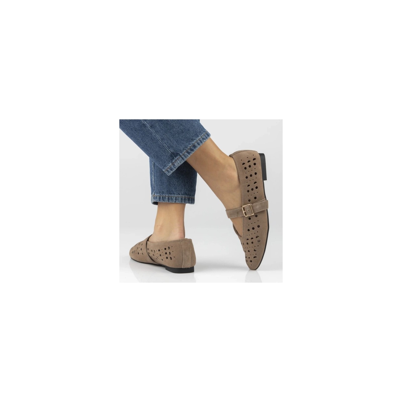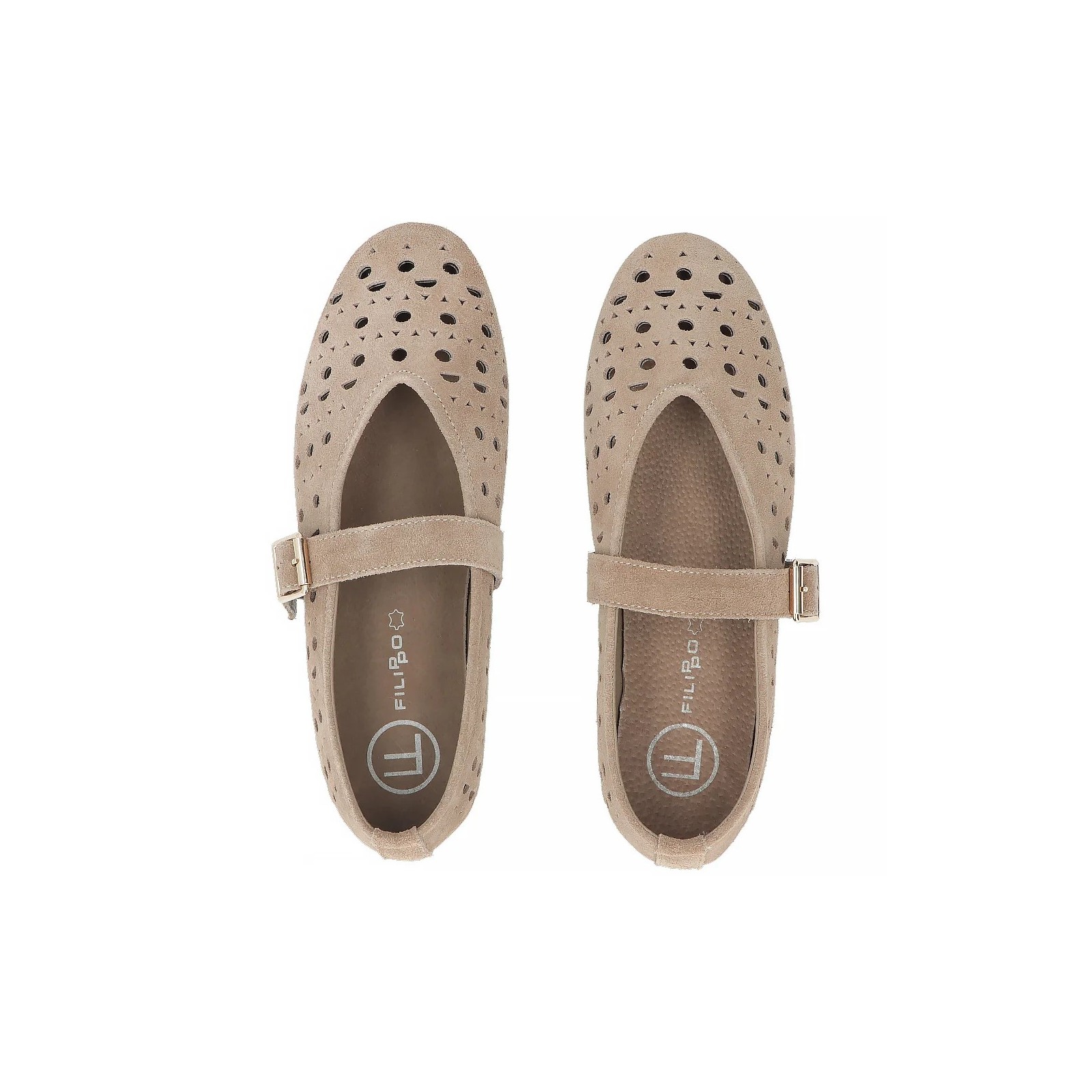 beżowe baleriny damskie, baleriny skórzane zamszowe, baleriny ażurowe Filippo, baleriny Mary Jane damskie, lekkie baleriny na lato, wygodne baleriny damskie skóra naturalna, Filippo DP7875/26 BE, modne baleriny damskie