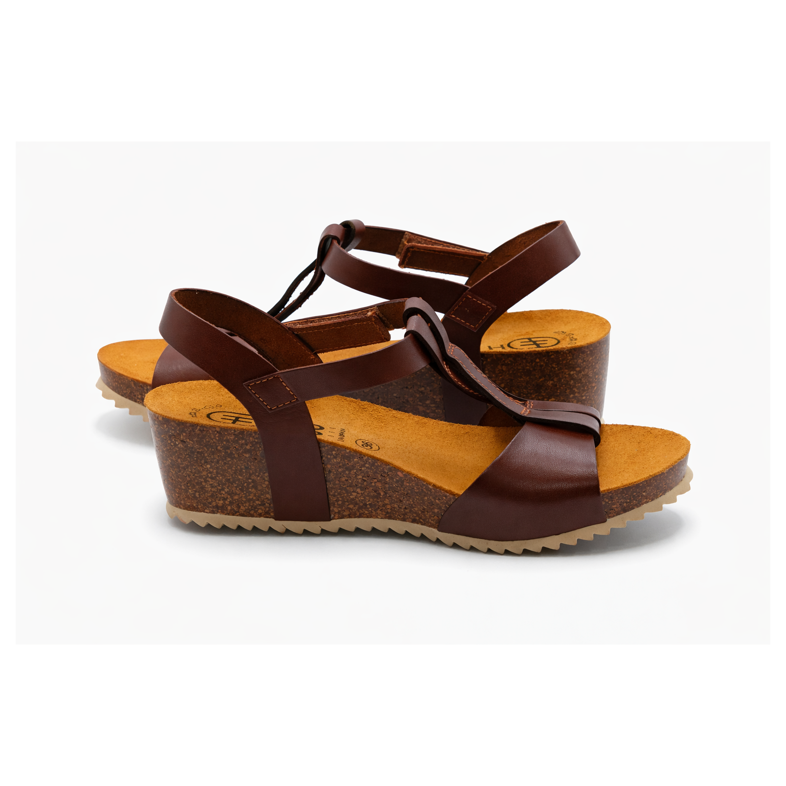 Subtelny odcień brązu (cuero) sprawia, że model świetnie komponuje się z każdą stylizacją – od zwiewnych sukienek po casualowe jeansy. Stabilny koturn delikatnie unosi sylwetkę, jednocześnie zapewniając komfort nawet podczas całodziennego noszenia.