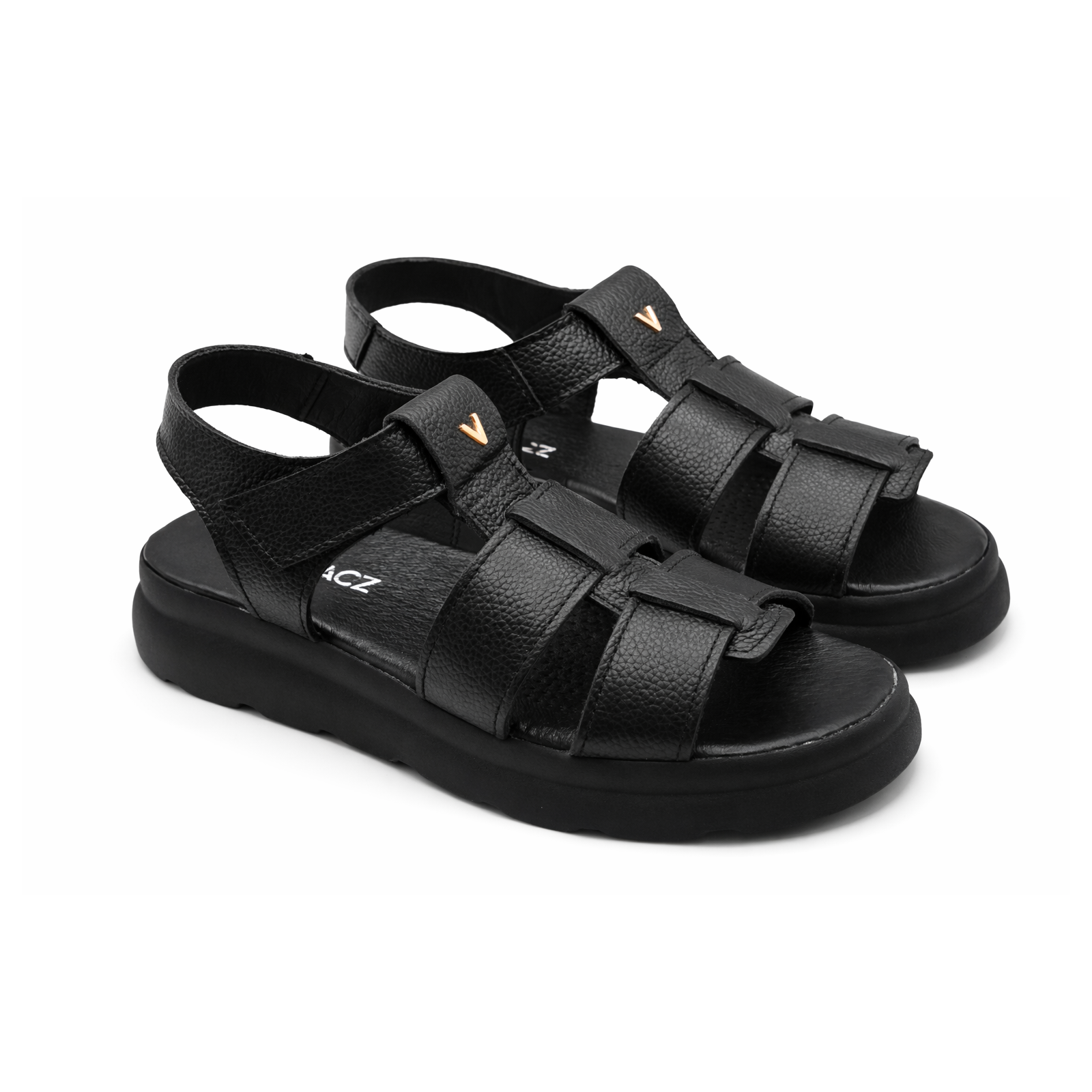Hiszpańskie sandały damskie HEE – czarne, skórzane z klamrami