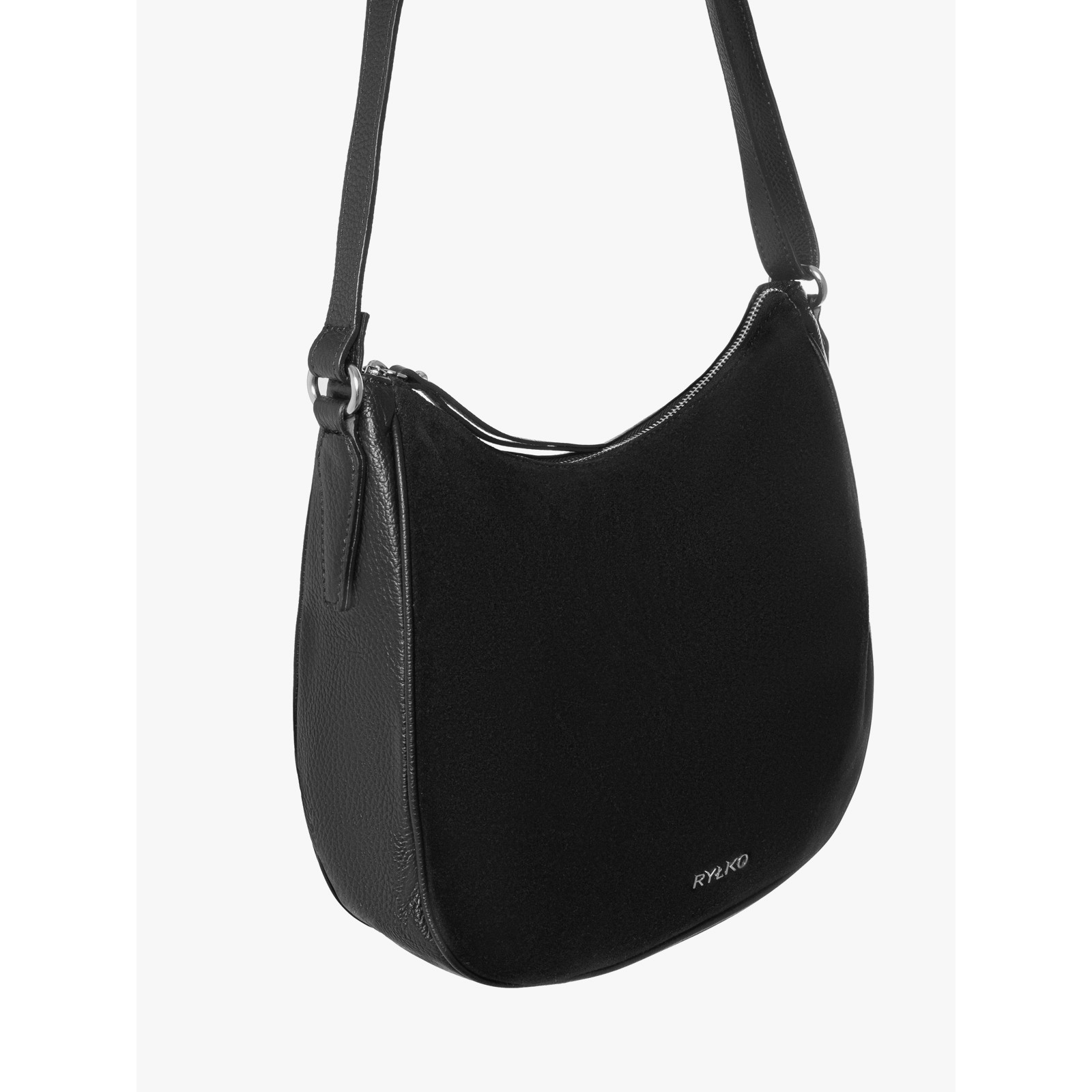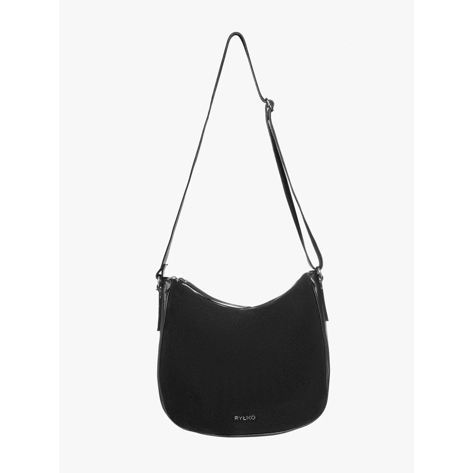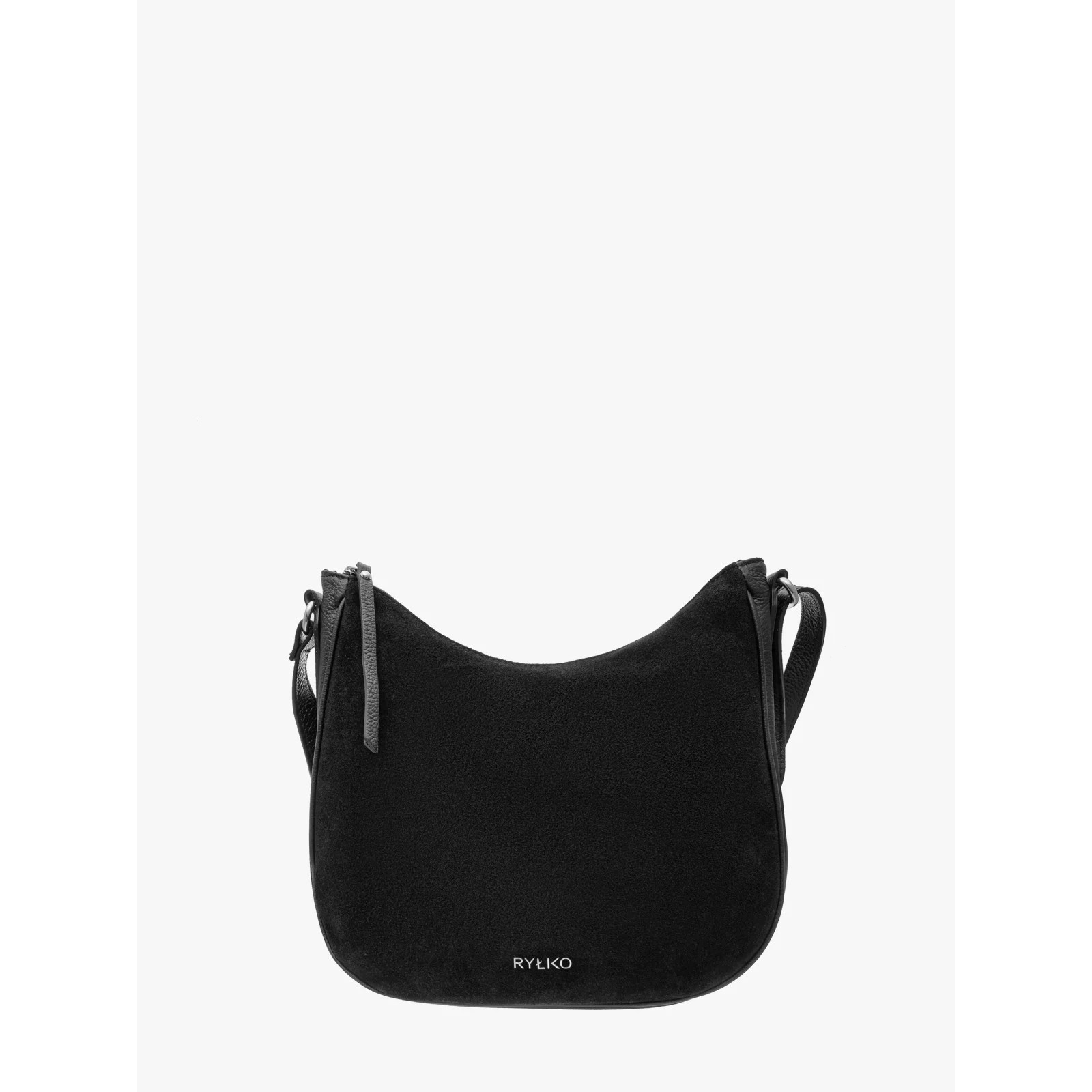 Czarna skórzana listonoszka średniej wielkości na pasku z logotypem Ryłko