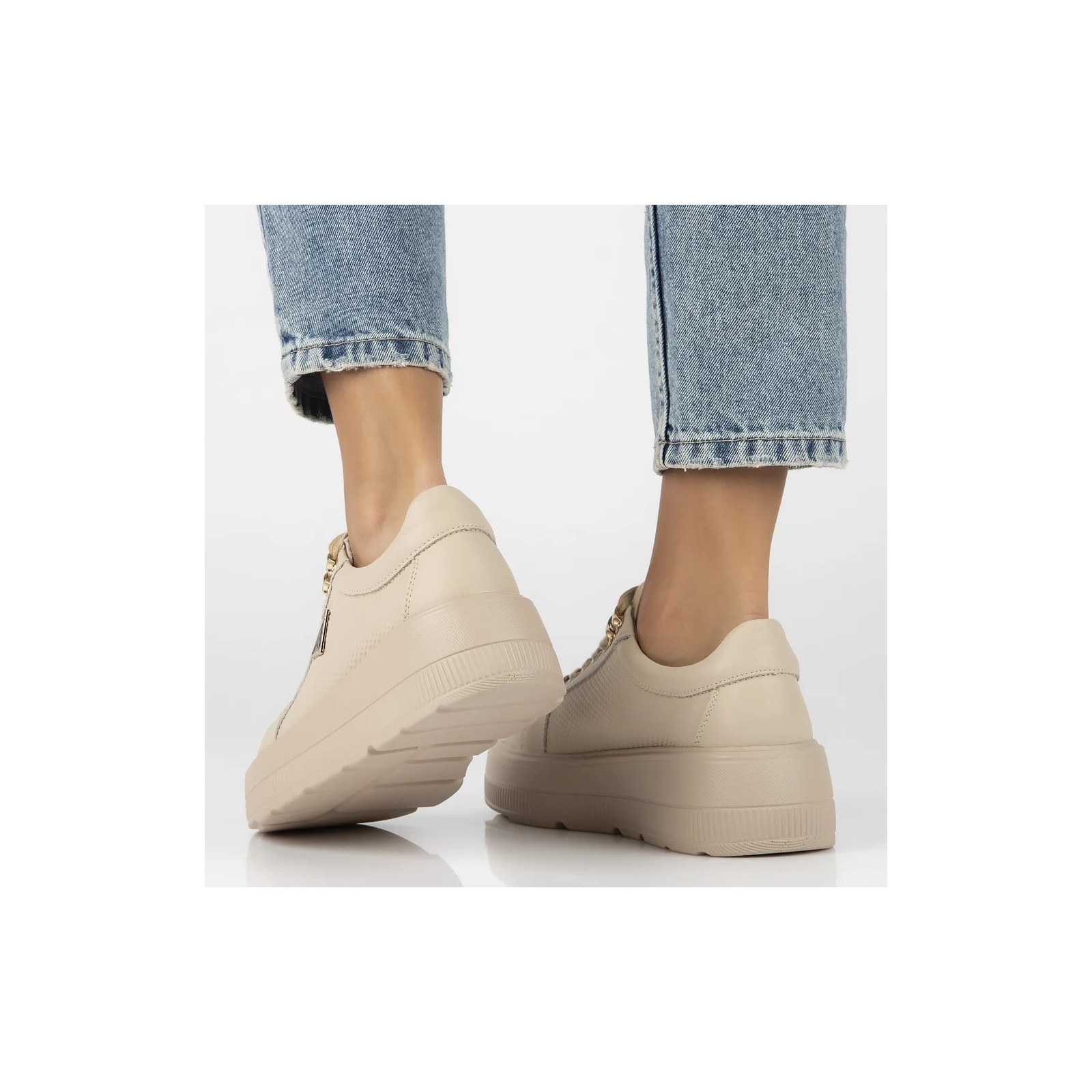 Sneakersy damskie skórzane beżowe firmy Tazani – styl, który idzie z Tobą
